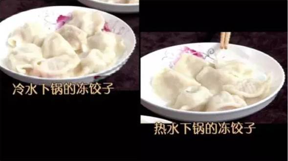结果,按照冷水煮的饺子提前出锅了,看上去冷水下锅煮的冻饺子外观上非常完整,没有破,每一个都晶莹剔透。而用沸水煮饺子晚了1分钟出锅。