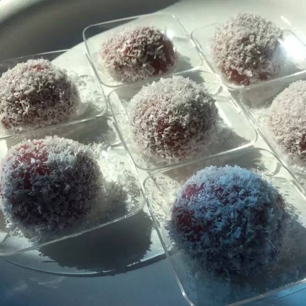 6.上锅蒸8分钟左右至熟。蒸熟的汤圆放在椰蓉中滚一圈即可食用。