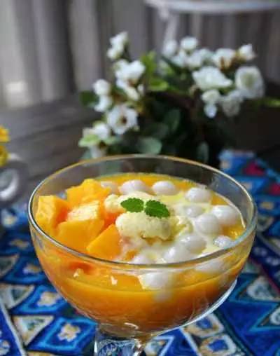 材料:中型芒果两个,速冻小圆子一小包,白糖半量杯,水半量杯