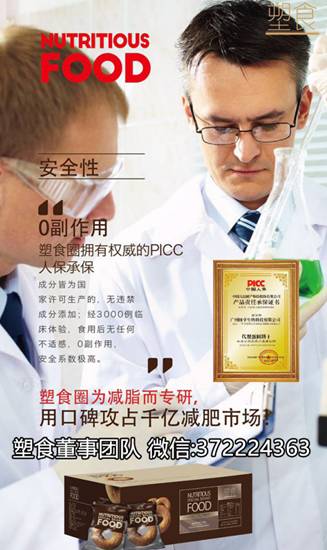 2017年将减肥市场定位为公司的发展方向,公司把微商与大健康两大热门行业积极联手,创造了跨界合作新的产物“塑食减肥饼干”,开创了新的商业格局。根据调查报告数字称,全球超重含肥胖人群达21亿,占全球人口1/3.而中国已成为肥胖事业的重要贡献力量,到2016年肥胖人口就以将达2亿,如果加上有减肥需求的人远不止这个数字,有专业机构评估这个行业的产值至少有1700亿元的机会。塑食将引领瘦身市场,打造健康减肥食品第一品牌。将瘦身、健康、时尚与美的事业进行到底。塑食董事霍霍现面向全国招商。塑食圈董事团队霍霍招商微信:372224363