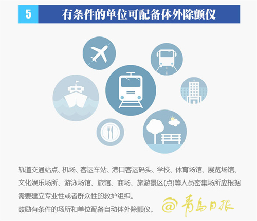 为鼓励全社会形成良好的急救医疗氛围,除加大急救知识宣传培训力度外,《规定》提出,一些人员密集公共场所可建立专业性或群众性的救护组织,特别提出鼓励有条件的场所和单位配备自动体外除颤仪。《规定》第三十条提出,鼓励医护人员从事社会急救医疗工作,市卫生计生行政部门应当会同相关部门制定符合社会急救医疗服务特点的社会急救医疗岗位薪酬待遇、职务晋升等优惠政策。(记者 隋峻)