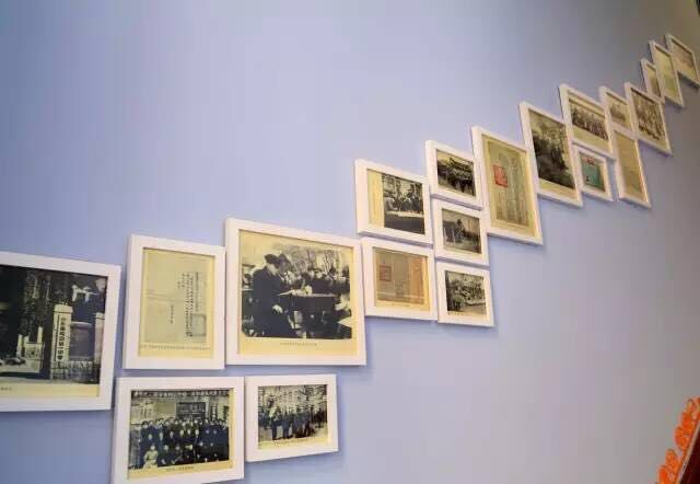入门后的走廊,左边墙面是“青岛诗书百年”文献展,发端于1898年止于2000年的时间轴,记录了青岛百年文化教育历史的叠进和演变。右边的橱窗里,陈列有文人的风骨、良友的风光、艺术的风向以及生活的风尚四大主题的内容,这即是塔楼1901运营内容的概括传达。