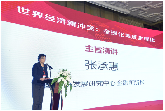 图为:张承惠女士针对“中国经济新格局与战略调整”做主旨演讲