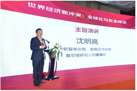 图为:沈明高先生针对“2017年经济展望与投资机会”做主旨演讲