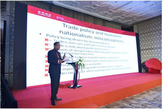 图为:Sreeni Kamma先生针对“特朗普新政对全球经济的影响”做主旨演讲
