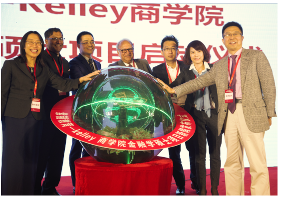 最后,在场领导上台按下发光球,至此紫荆-Kelley商学院金融学硕士项目正式启动。