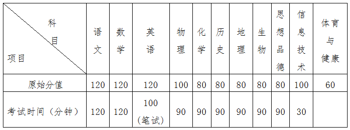 二、各科目原始分值及考试时间