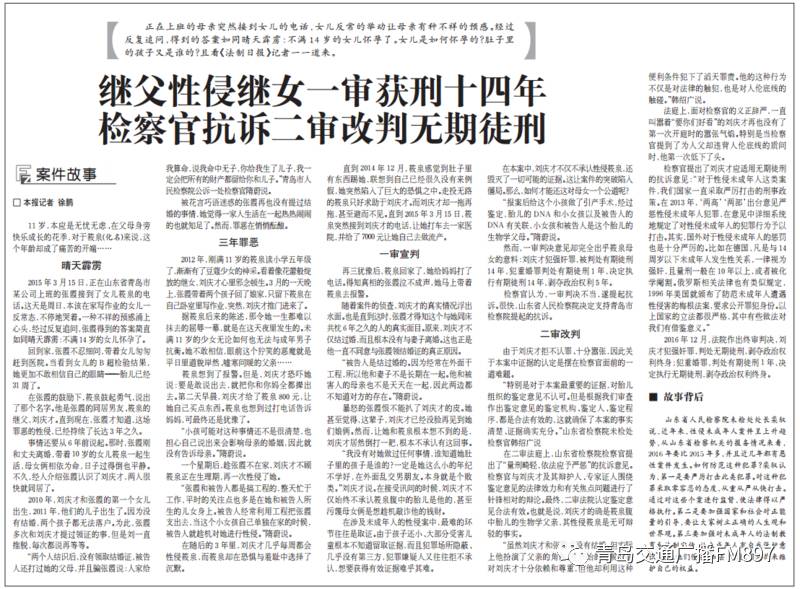 山东省检察院未检处检察官韩绍广说:“虽然刘庆才和张霞并没有结婚,但实际上他扮演了父亲的角色。在开始的时候女孩对刘庆才十分依赖和尊重,但他却利用这种便利条件犯下了滔天罪责。他的这种行为不仅是对法律的触犯,也是对人伦底线的触碰。”