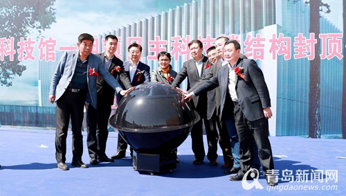 青岛新闻网讯 4月18日,备受市民瞩目的青岛科技馆项目一期主体结构顺利封顶。来自高新区、项目设计和施工、监理等单位的嘉宾和建设者,与华通集团相关负责人共同见证了封顶仪式。