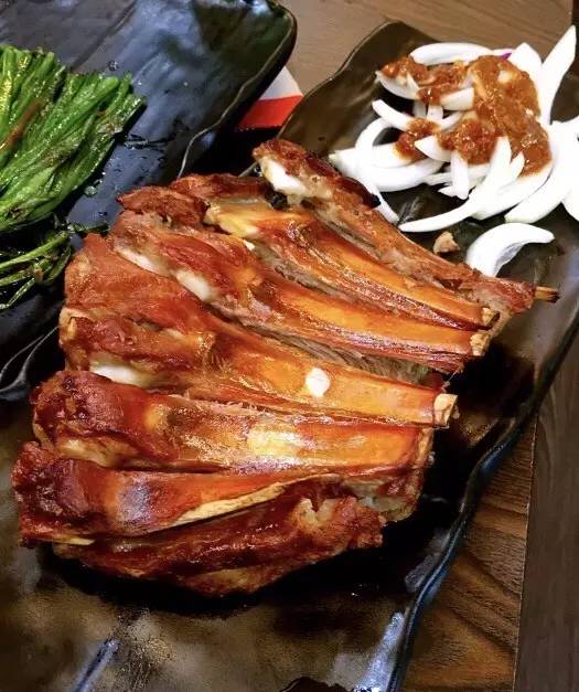它家招牌自然就是烤排骨了,烤大排、烤小排、烤羊排...火候很正点,外焦里嫩,很有肉香的原味,比起吃串的袖珍含蓄,烤排骨那真真是过瘾!
