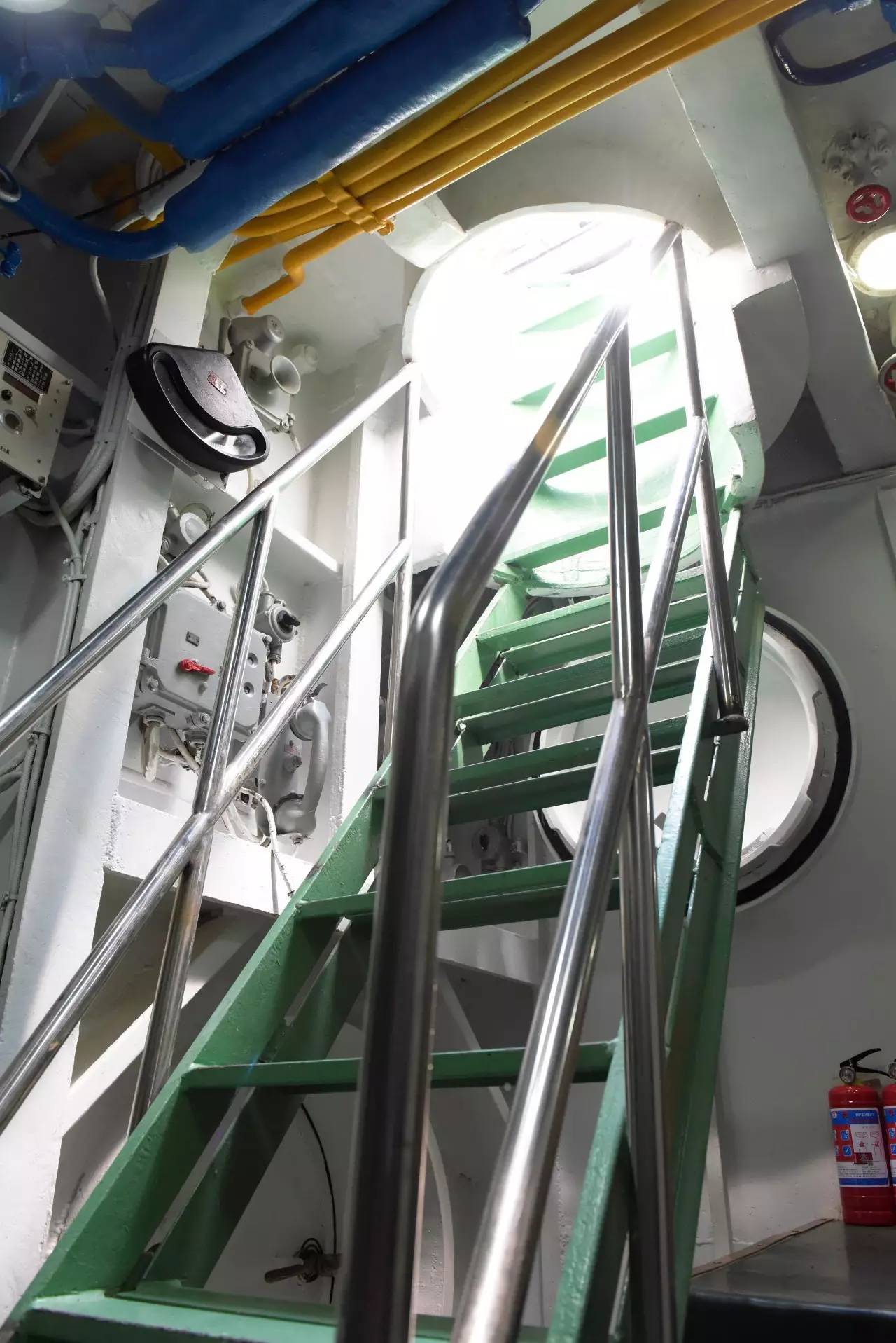 △401艇有着庞大的躯体,它的出口和入口都是一个直径只有约1米的圆形舱门,人们踩着一个狭窄的扶梯进出。