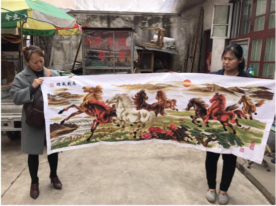 因此,从小儿子2岁开始,李庆苹就每天绣十字绣,历经4年光阴,两幅震撼人心的作品问世,分别是2.8米长0.7米宽的《马到成功》和6米长0.7米宽的《清明上河图》。在这两幅惟妙惟肖的作品凝结了一个母亲对孩子上学的渴望.张善领夫妇说,要把两幅作品卖掉,供孩子上学,不能让孩子没有文化。张善领说,他们不需要捐款,不需要同情,如果真心喜欢那两幅十字绣,能让他们有尊严的将作品卖出就感激不尽了。