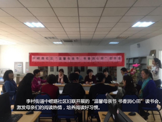 李村街道中崂路社区妇联开展的“温馨母亲节 书香润心田”读书会。激发母亲们的阅读热情,培养阅读好习惯。