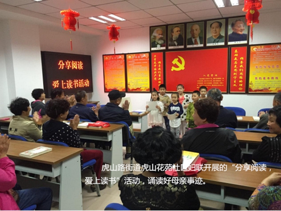 虎山路街道虎山花苑社区妇联开展的“分享阅读,爱上读书”活动,诵读好母亲事迹。