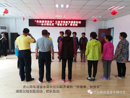 虎山路街道金水路社区妇联开展的“你健康,我快乐”感恩父母主题活动,欢乐互动。