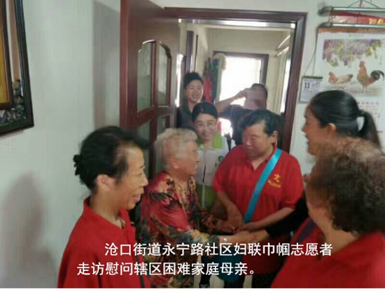 沧口街道永宁路社区妇联巾帼志愿者走访慰问辖区困难家庭母亲。