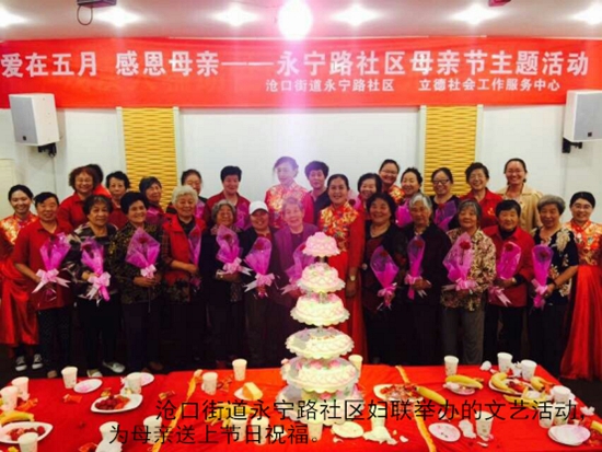 沧口街道永宁路社区妇联举办的文艺活动,为母亲送上节日祝福,并走访看望困难家庭。