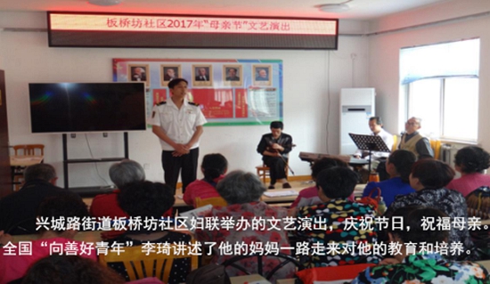 兴城路街道板桥坊社区妇联举办的文艺演出,庆祝节日,祝福母亲。活动中,全国“向善好青年”李琦讲述了他的妈妈一路走来对他的教育和培养。