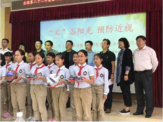 图为青岛市“目浴阳光”预防近视校园护眼活动启动仪式