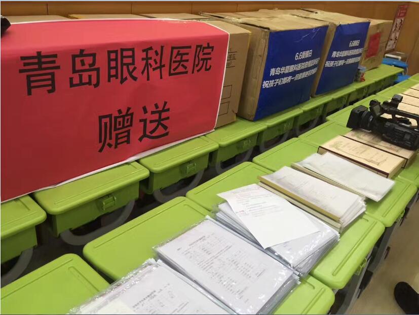 图为青岛眼科医院赠送体育用品