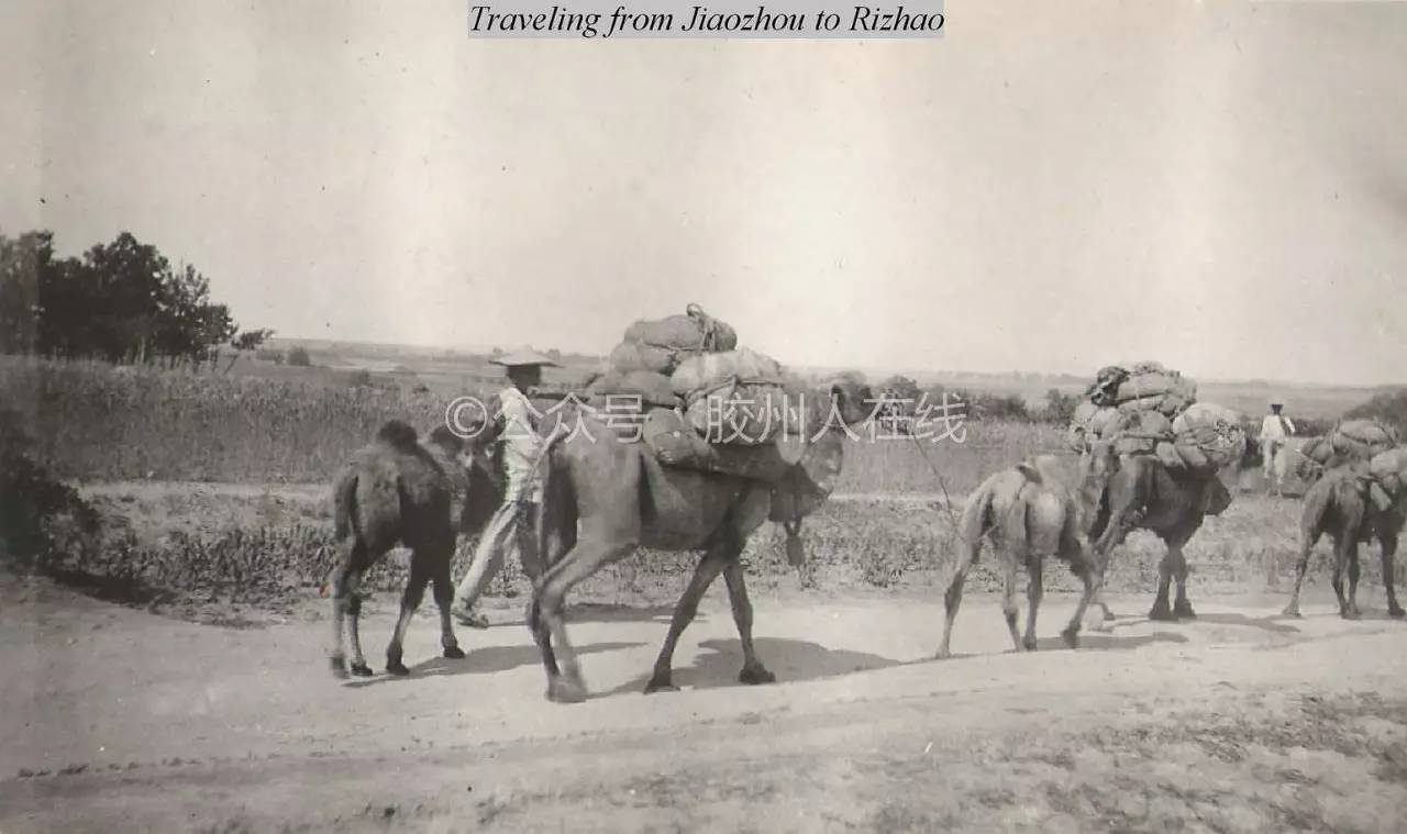 从胶州到日照外出的路上。这是用马匹在托运货物。貌似图中有一匹骆驼?