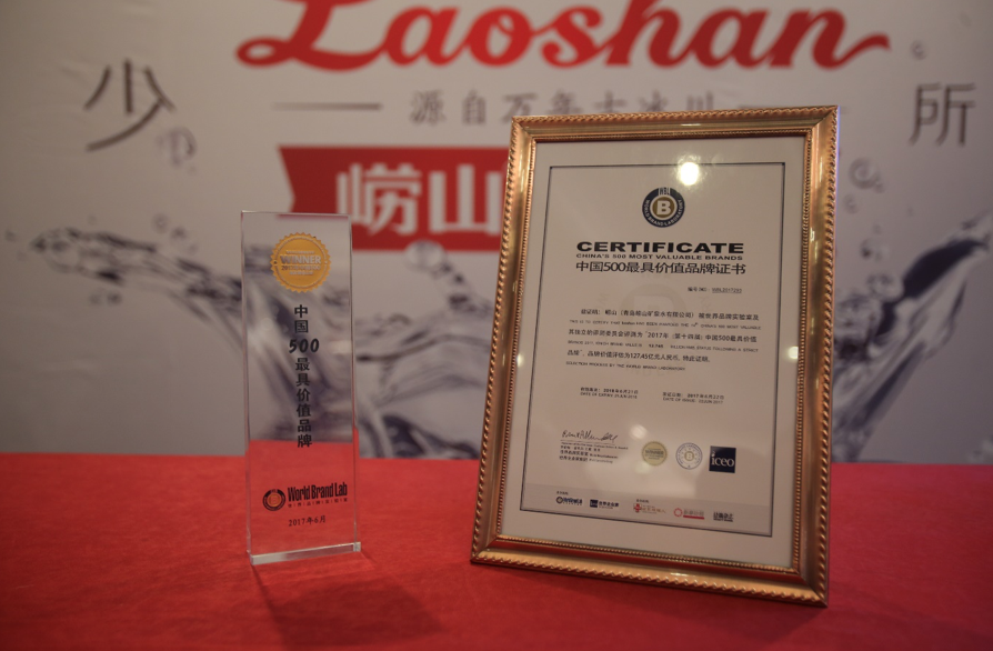 6月22日,世界品牌实验室2017年度“中国500最具价值品牌”榜单在北京正式揭晓,享誉中外的百年品牌“崂山”再度上榜,以127.45亿元的品牌价值一举飙升突破百亿,同比提升161%,位列品牌榜第293位,比去年提升了125位,连续三年成为矿泉水行业唯一上榜品牌,被主办方评为“2017年度最佳表现品牌”。