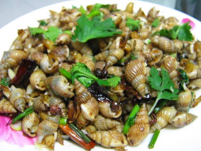 食材:钉螺、葱、蒜、姜、香叶、花椒、干辣椒、糖、盐、蚝油、料酒