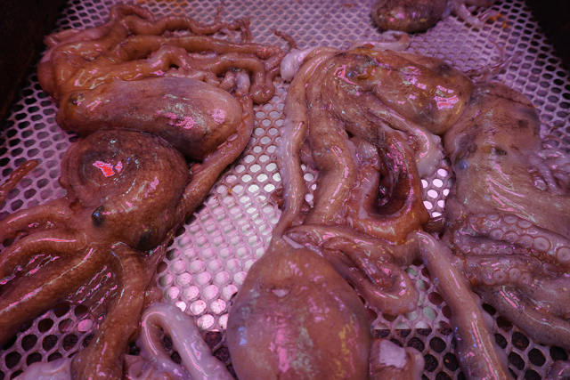 学名章鱼,青岛人一般也叫八带或八带鮹,八带的爪短小、个头小,八带鮹爪粗大,个头大。据说八带也是分公母的,哪位懂的分辨的吃货可以在文末右下角写留言分享一下~