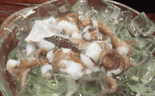 还有一种很“凶残”的吃法,生吃八带,起源于泡菜国,是将八带去胆汁后成段剪下,蘸着辣酱直接吃掉...一般人下不去嘴,还是脑补下口感吧...