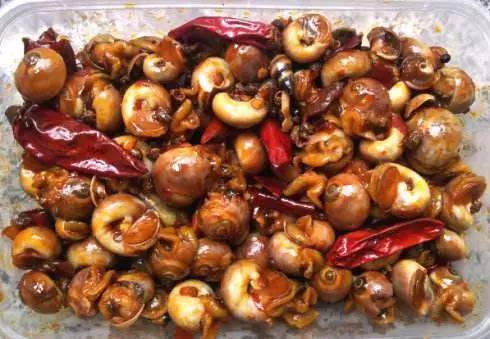 提示:钉螺洗净后倒入开水里煮10分钟左右,可以有效的杀死细菌。
