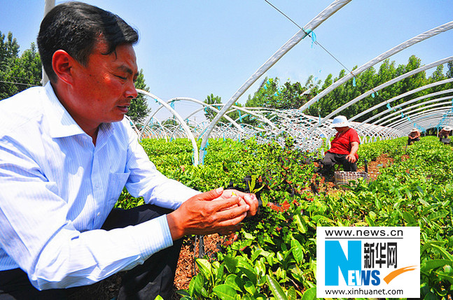 苏庆亮生前在茶园察看泰山极顶茶生长情况。