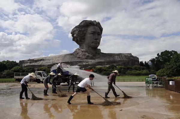 星辰在线7月5日讯(星辰全媒体记者 晨星)洪水退,天放晴。7月5日上午,橘子洲景区开始进行大规模的清淤消毒工作。