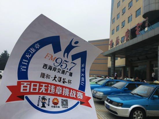 “百日无违章挑战赛”报名,可通过微信公众号“西海岸交通广播”下拉菜单“百日无违章”填写信息 ,领取车贴位置也可接受现场报名:西区:①隆和大溪谷 ② 福朋喜来登大堂;东区:中石油胶州湾隧道加油站(薛家岛公交枢纽站处)