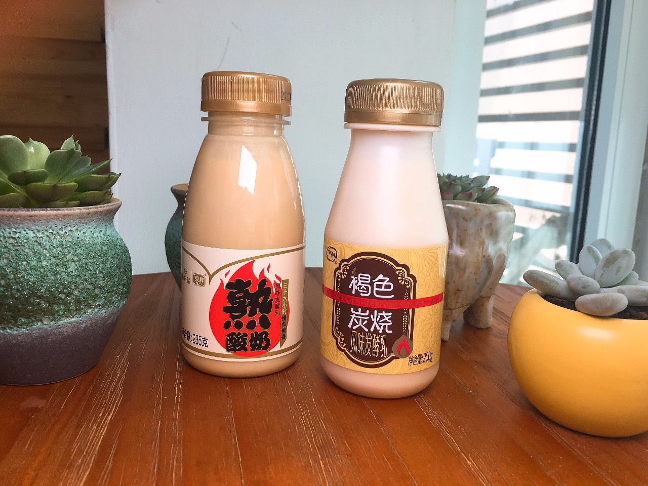 熟酸奶相对比质地厚实,褐色炭烧略酸