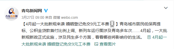 今天的四月开始,结婚9块钱的工本费取消了,以后你妈催你结婚的时候,再也不要拿一无所有当作不结婚的借口了,毕竟拿结婚证都已经不需要钱了。