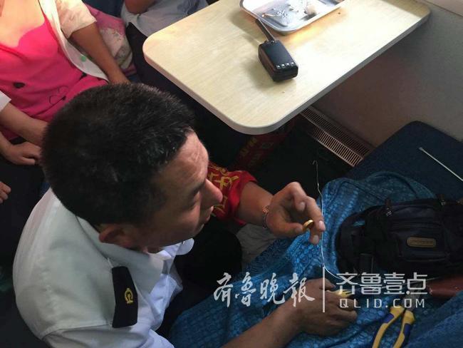 原来,6月30日18时40分,邹先生乘成都到青岛的K206次旅客列车到达郑州站,邹先生下车来到出站口时突然发现戴在手上的订婚戒指不见了。邹先生急忙跑到站台上找到列车长张强。张强安排安全员宫相义带着邹先生迅速上车查找却一无所获,由于站停时间短,宫相义留下了邹先生的电话。