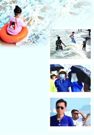 记者 原野 一名市民坐在救生圈上玩水纳凉。记者 赵健鹏 摄孩子们在栈桥浴场戏浪纳凉。记者 赵健鹏摄两名女士出门采取了严密的防晒措施。(记者 赵健鹏)