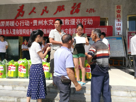 “洪水来得太突然,家中米面油都过了水无法食用,多亏了国美送来的救灾物资,让我们的生活有了保障。”家住贵州省黔南州瓮安县的赵先生一边领取国美救灾物资一边说。