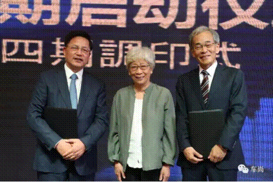 宋庆龄基金会胡正跃副主席、丰田汽车公司村上晃彦专务、项目设立人肖梦女士合影