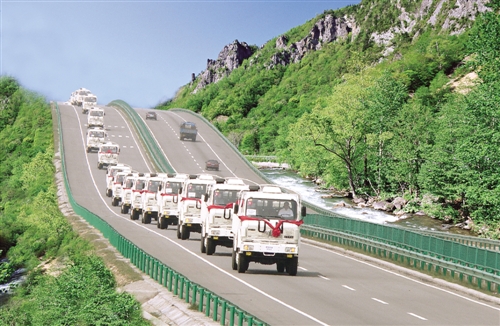 内蒙古北方重汽自主研发的创新产品——北方奔驰重型汽车正行驶在公路上。
