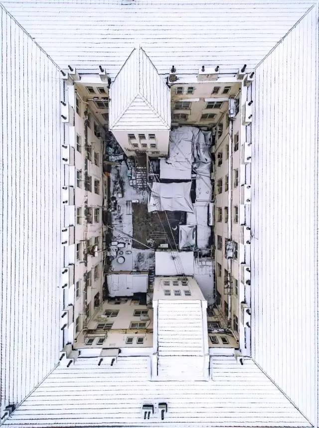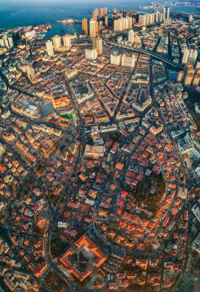 (航拍黄岛路与芝罘路交驻口的里院,摄影师@卢晖)