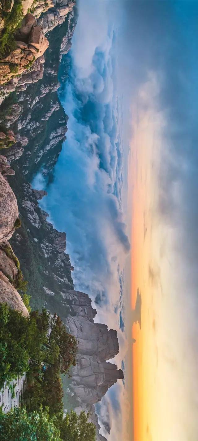 (请将手机横屏观看,日落时分的崂山云海,摄影师@王泽东)