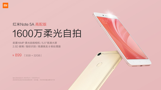 红米Note5A拥有铂银灰、香槟金、玫瑰金这三种机身颜色,2GB+16GB的标准版售价699元、3GB+32GB的高配版售价899元、4GB+64GB的高配版售价1199元。这款新机还将于本月底升级小米最新发布的快如闪电的MIUI9系统,使得这款手机体验上更上一层楼。