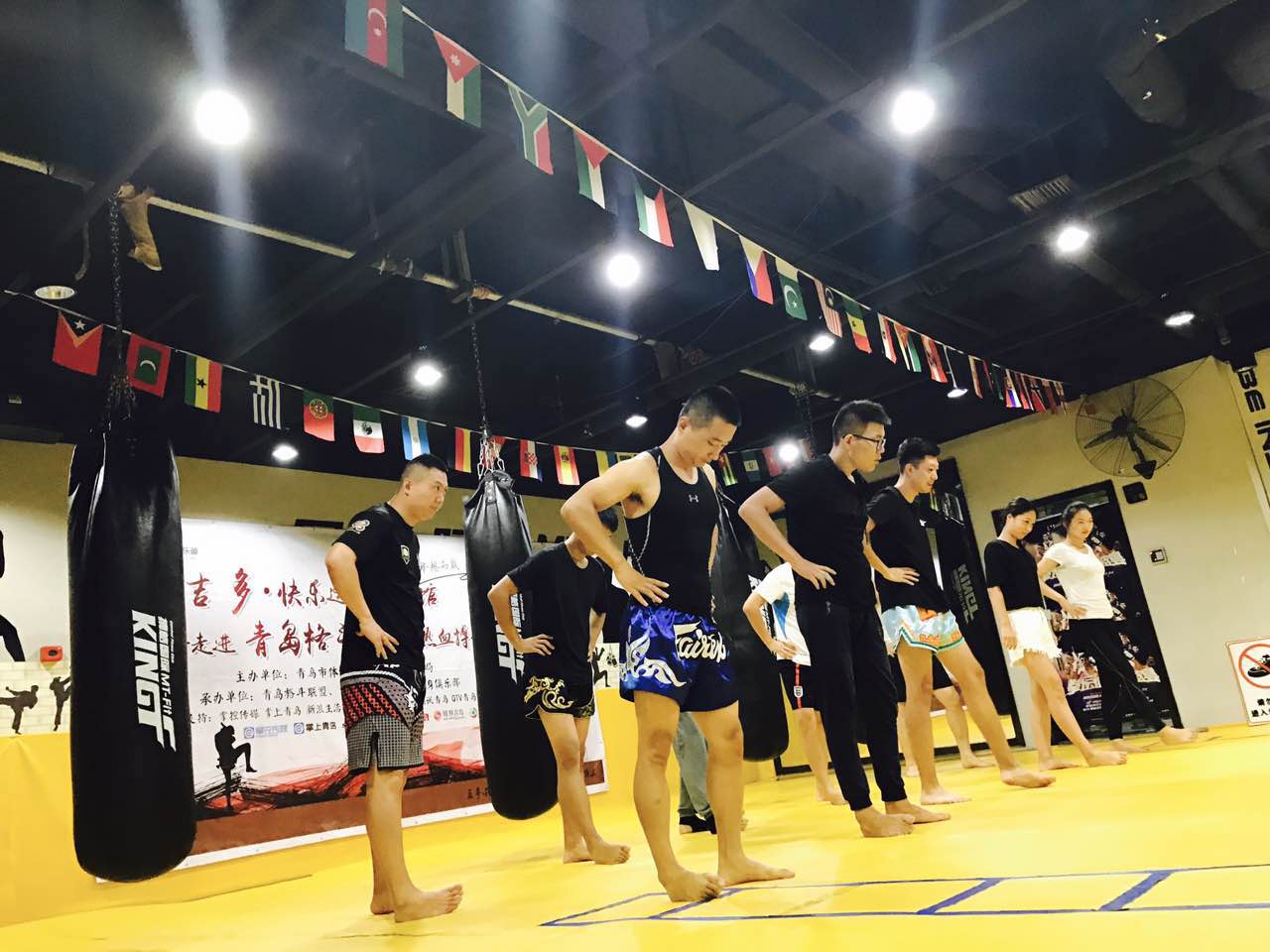 活动现场来了三十余位慕名而来体验格斗的青岛市民,在教练精彩的打靶展示后,他们也都跃跃欲试。在教练一对一的教授学习中,学员们学习了右直拳、左勾拳等拳法,学员们在练习场上大呼过瘾。