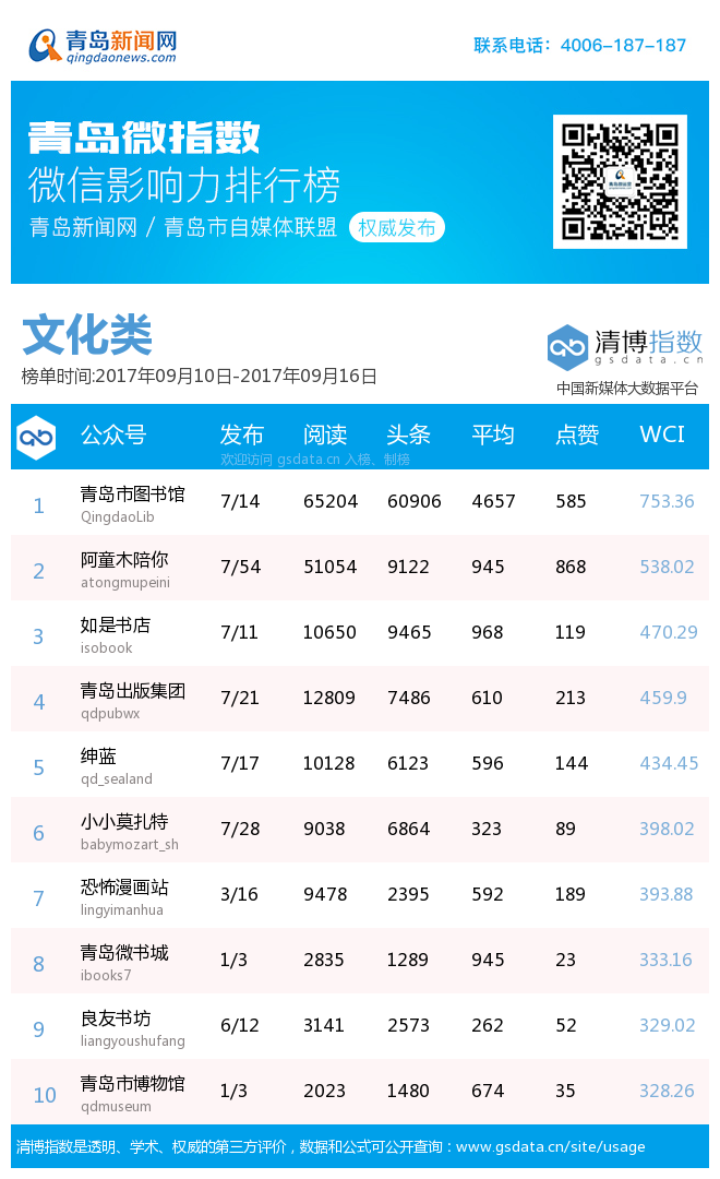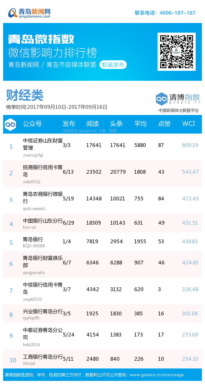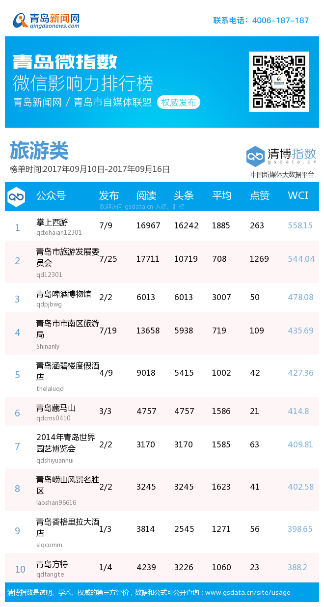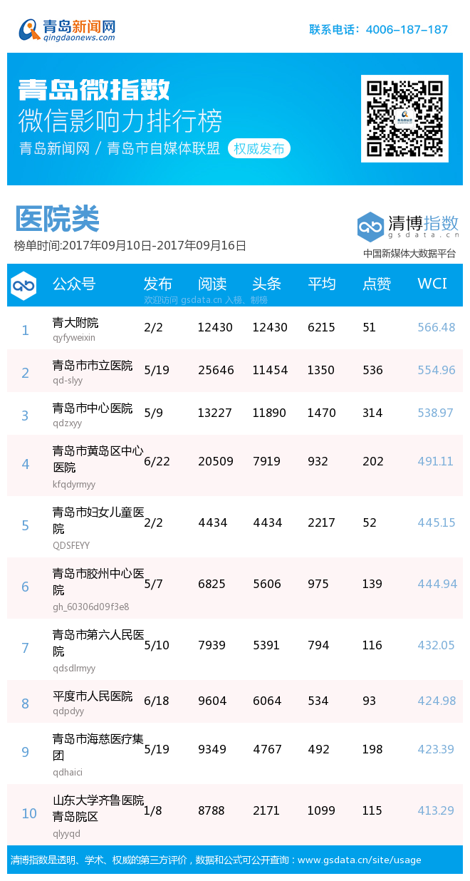 3、本次榜单收录了青岛13个行业微信公众号,如您的账号暂未收录,可联系4006-187-187。