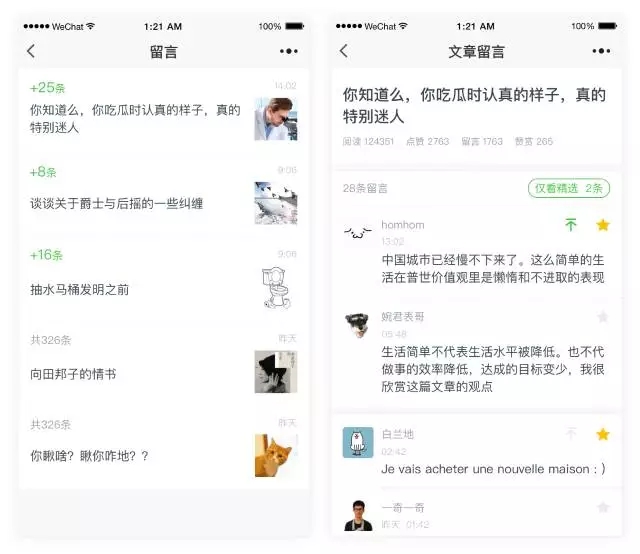 开通了留言功能的公众号,可查看每篇文章的留言,并进行精选、置顶和回复等操作。