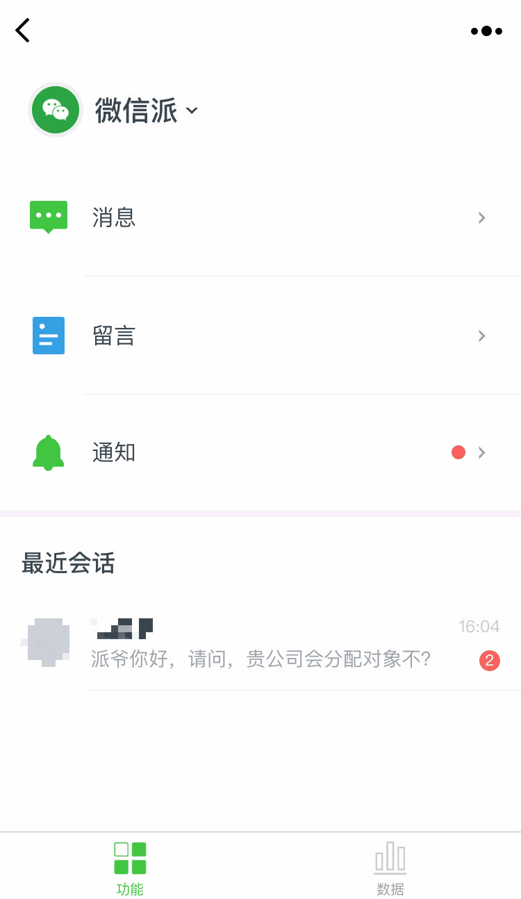 2、通过“公众平台助手”小程序回复过的用户,将出现在“最近会话”中。