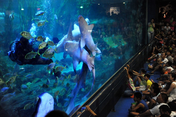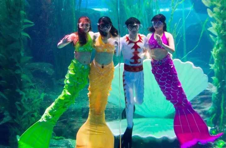 青岛海底世界升级版《人鲨共舞》、《梦幻美人鱼》、《海底后花园》三大表演,十一全部加场,多达11场,轮番上演,精彩纷呈。