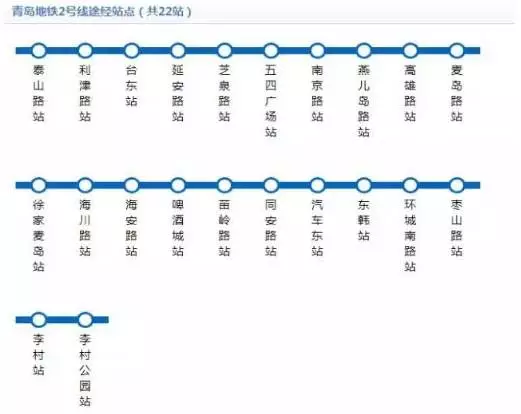 一期工程全长25.2 公里,全线共设车站22座 ,起自泰山路站,止于李村公园站,途经市北区、市南区、崂山区、李沧区四个区。