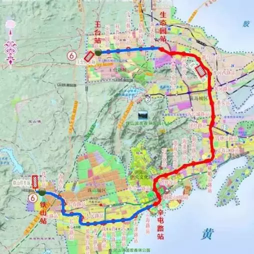 井冈山路—王台的6号线是一条贯穿黄岛区的L型路线。自太行山路站起沿著团结路向北,经辛安、红石崖,到达终点王台镇站,线路长度29.89km。